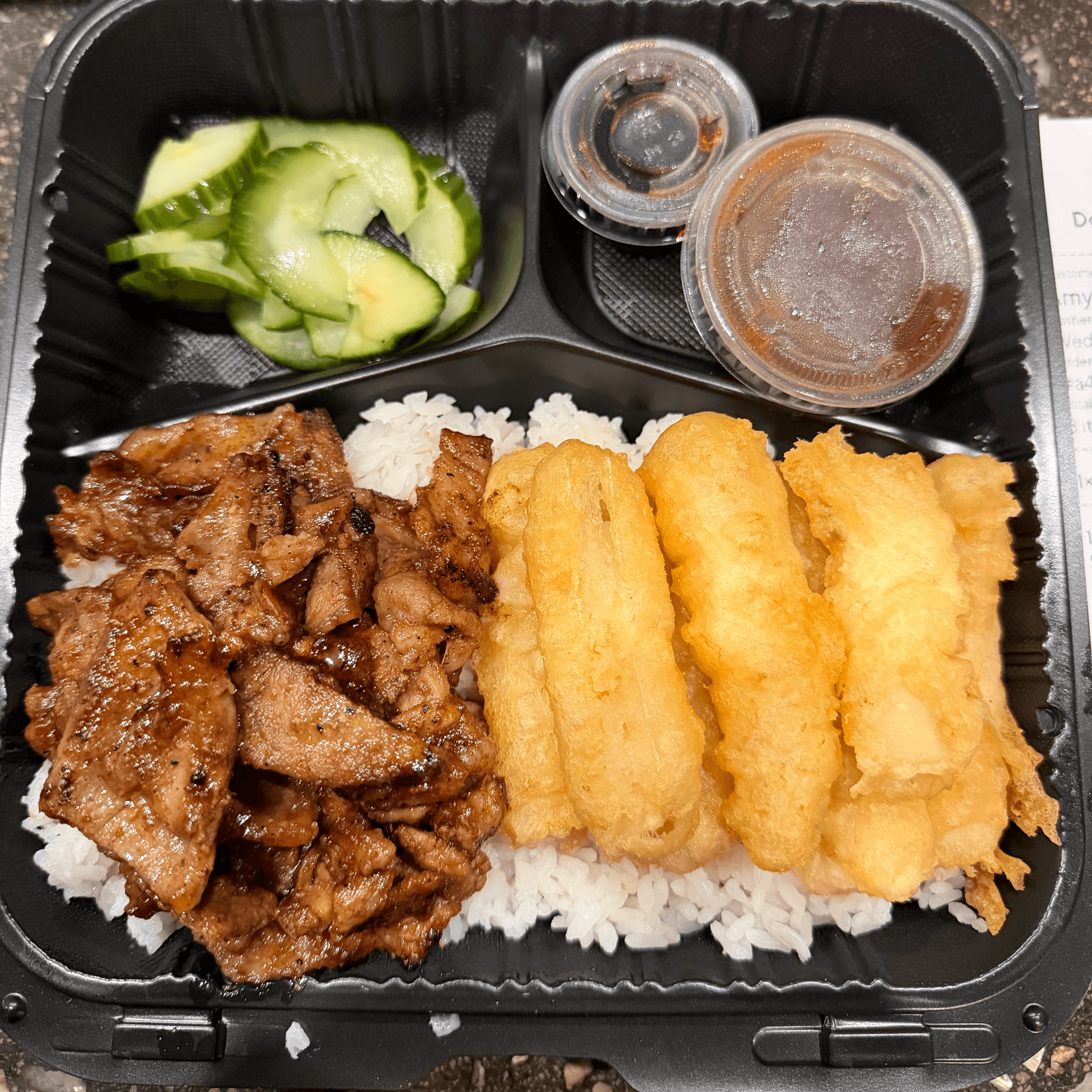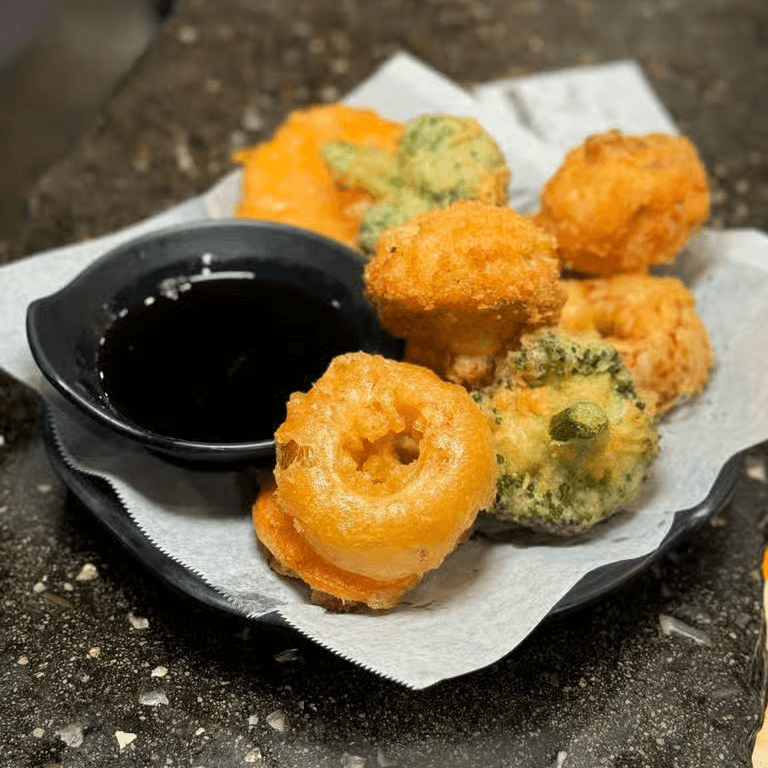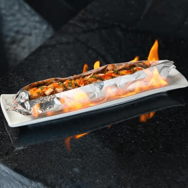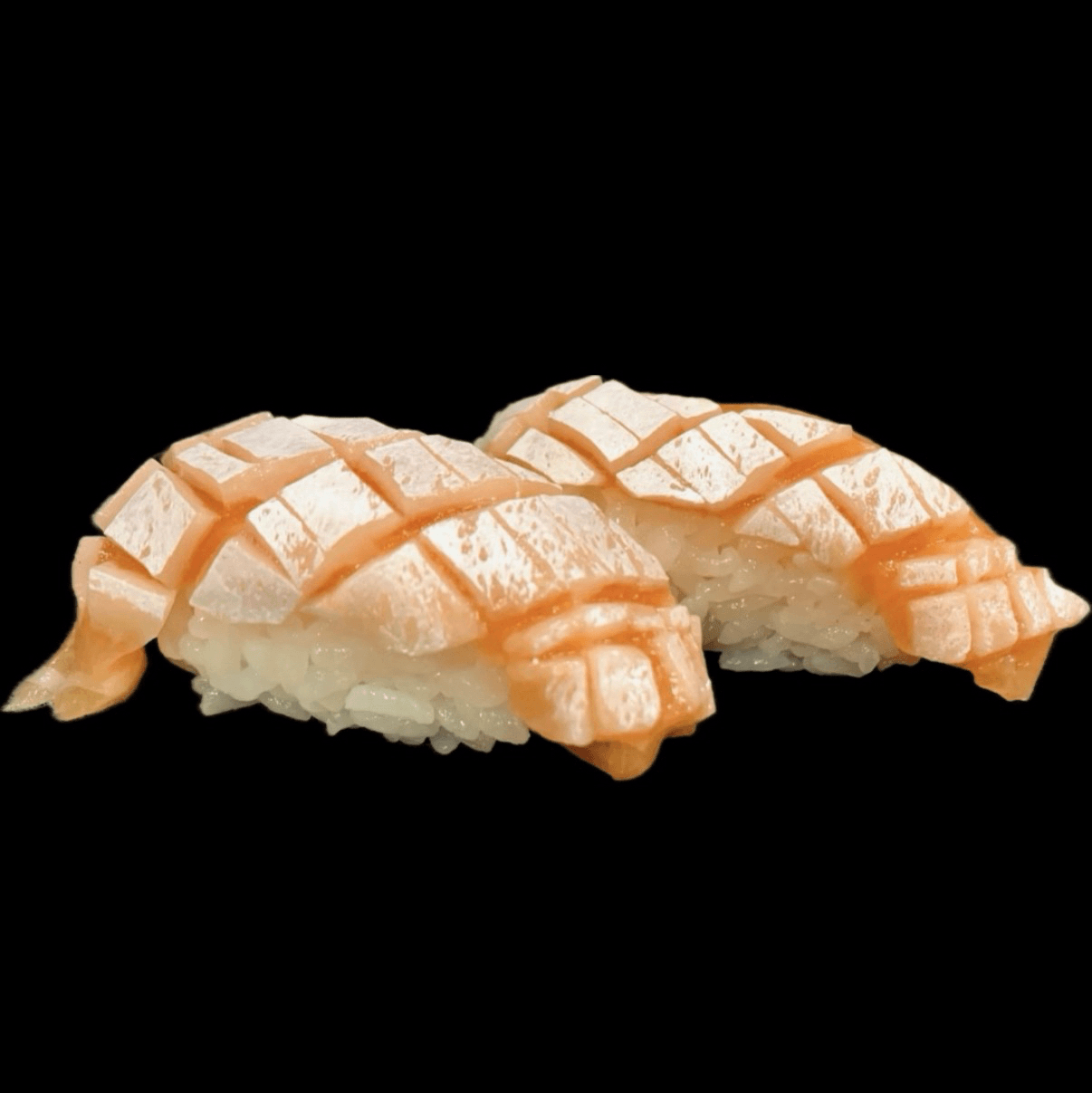 Cucumber, avocado, deep-fried shrimp topped with ono, torched.