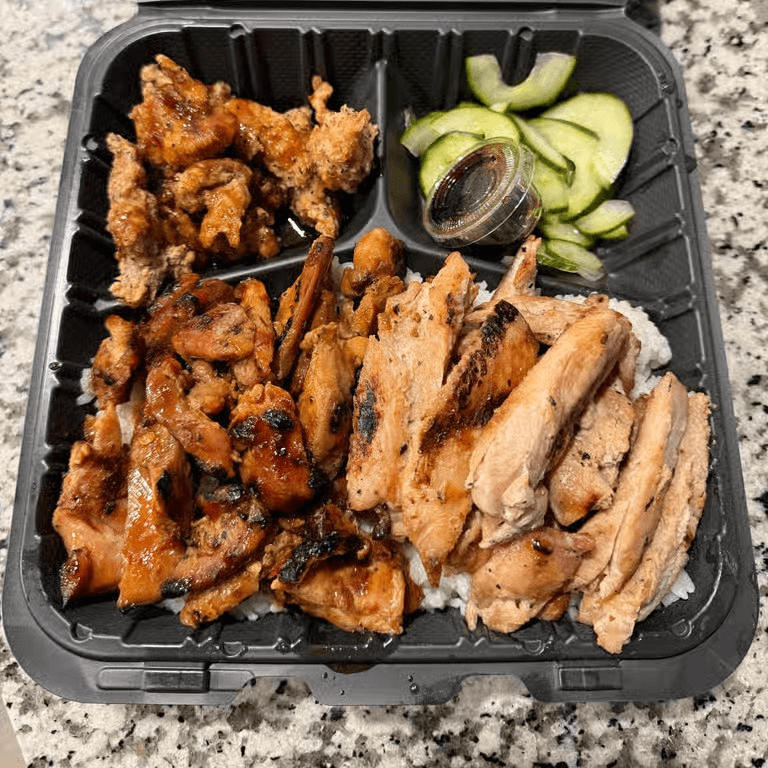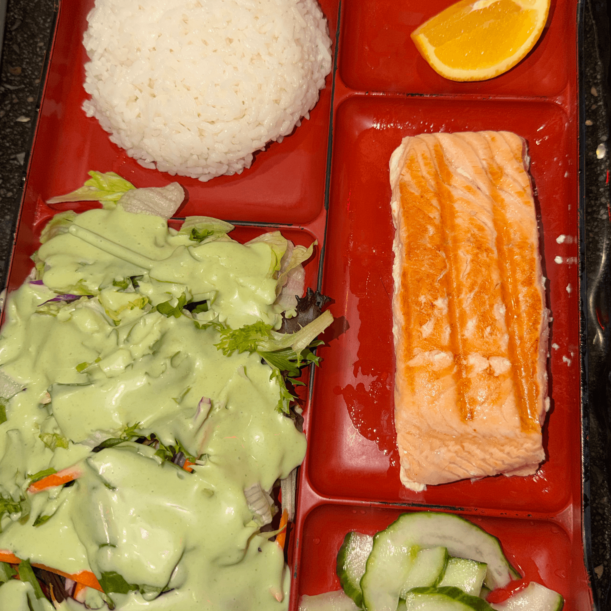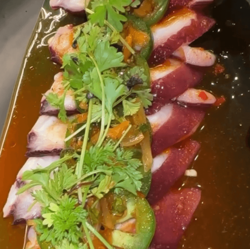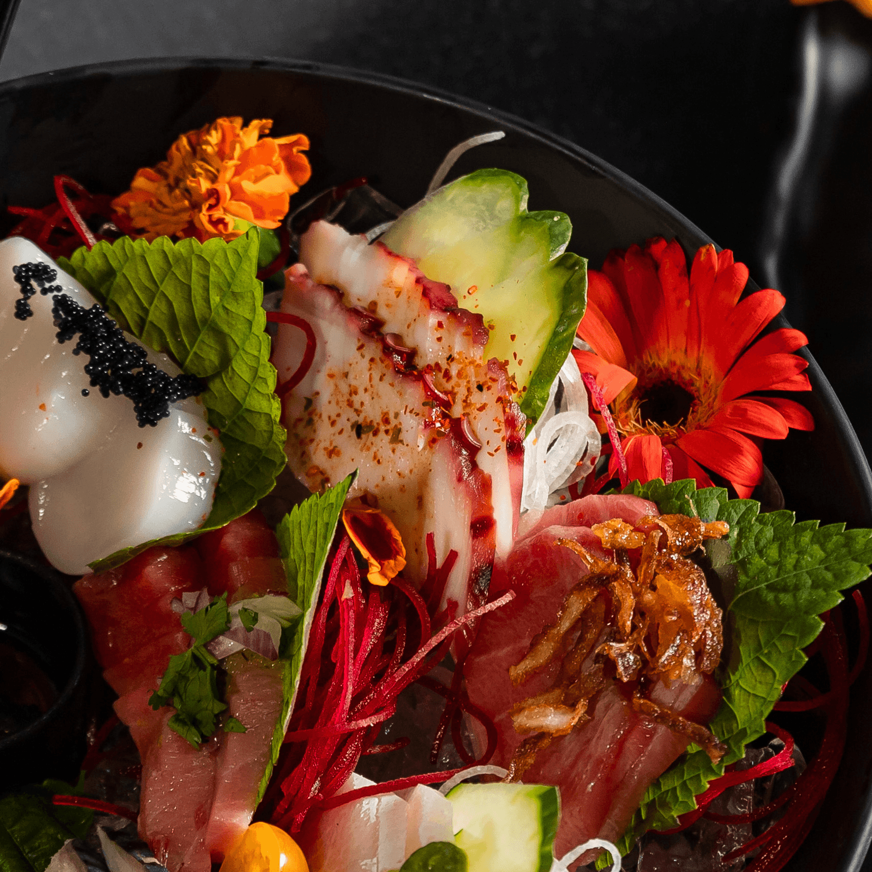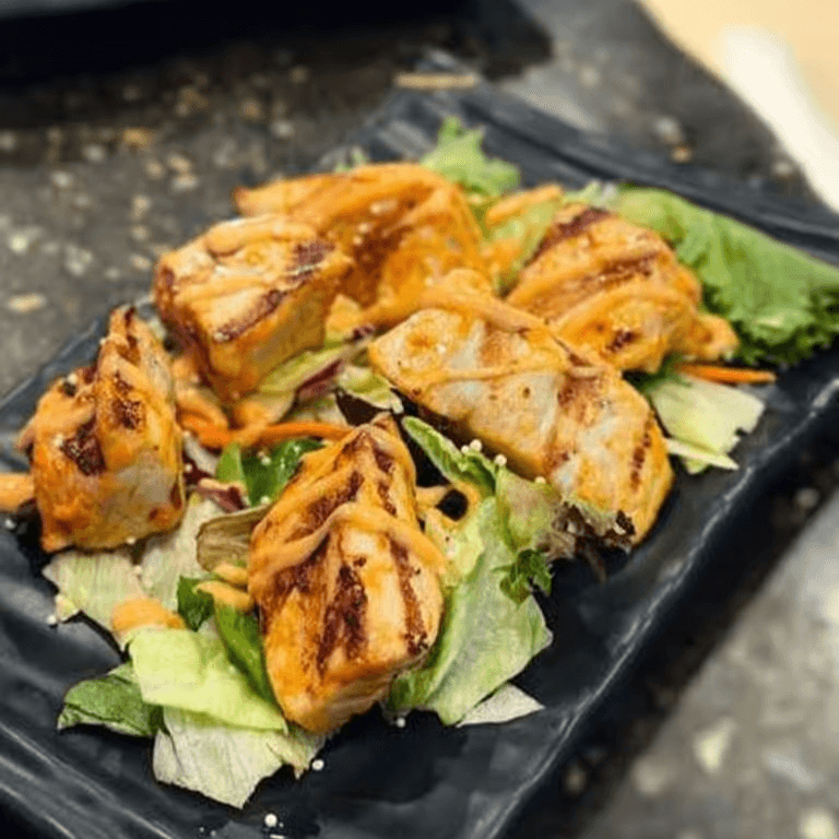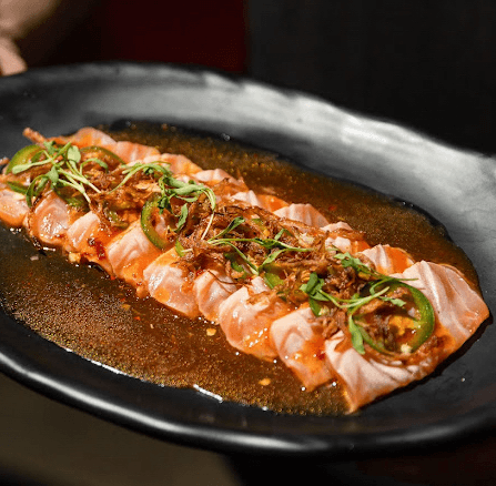 Lemon, cucumber, cilantro, spicy tuna topped with salmon, ponzu, sesame oil, sriracha