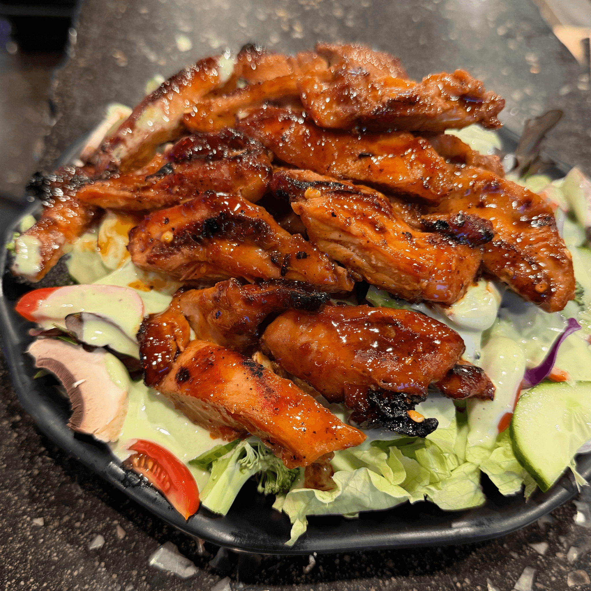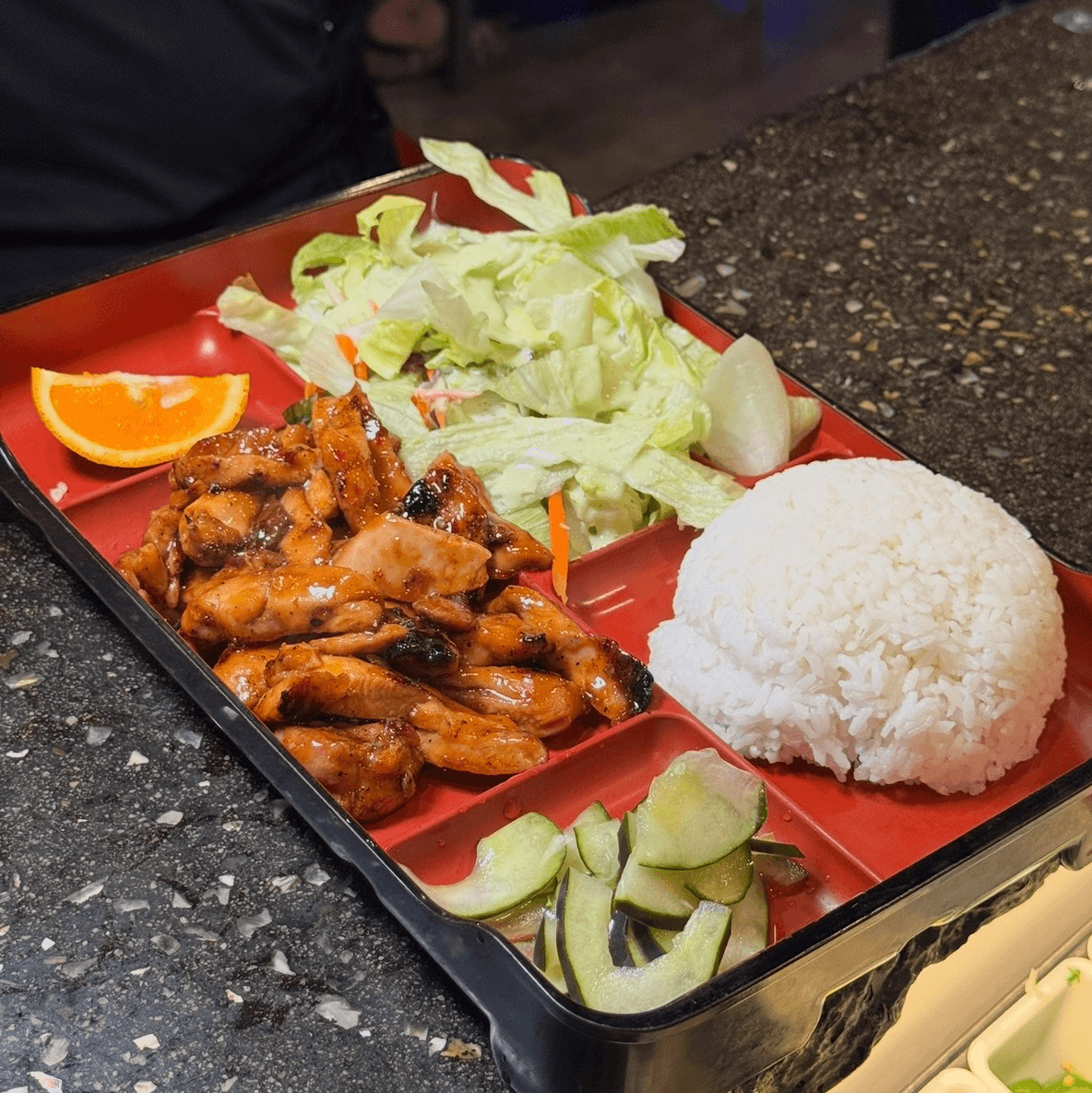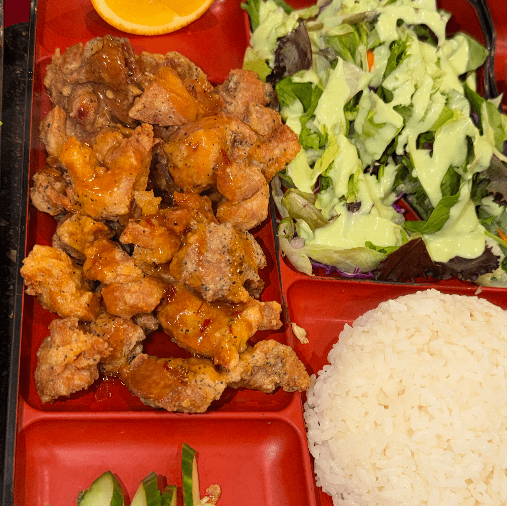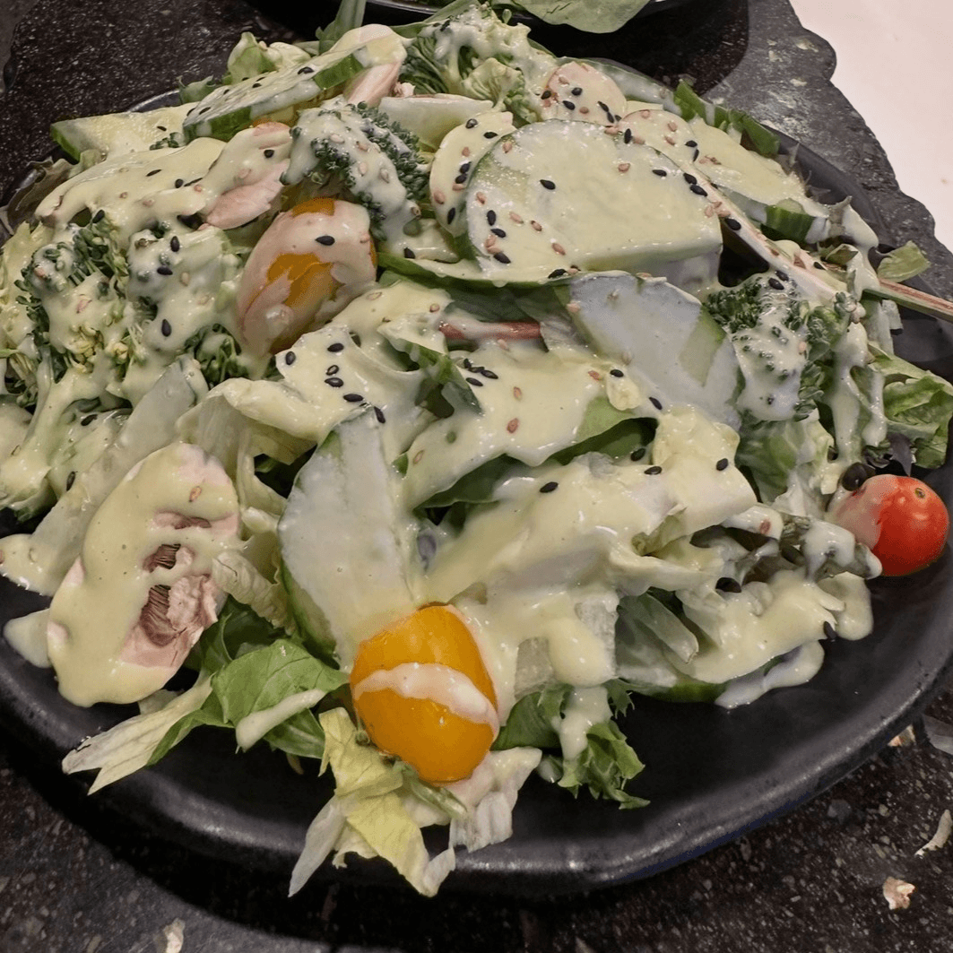 Lemon, cucumber, cilantro, spicy tuna topped with salmon, ponzu, sesame oil, sriracha