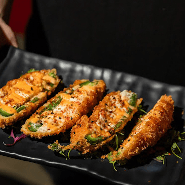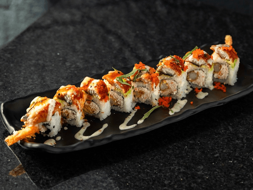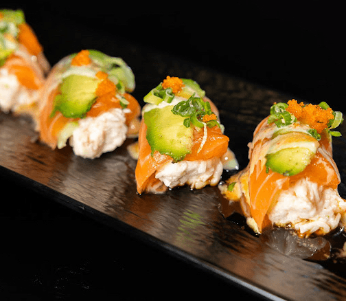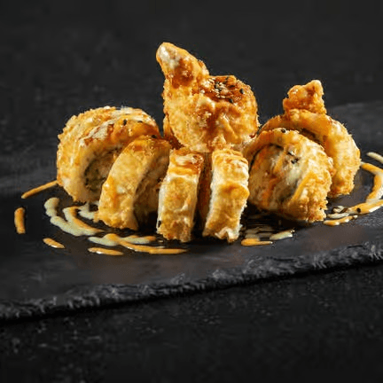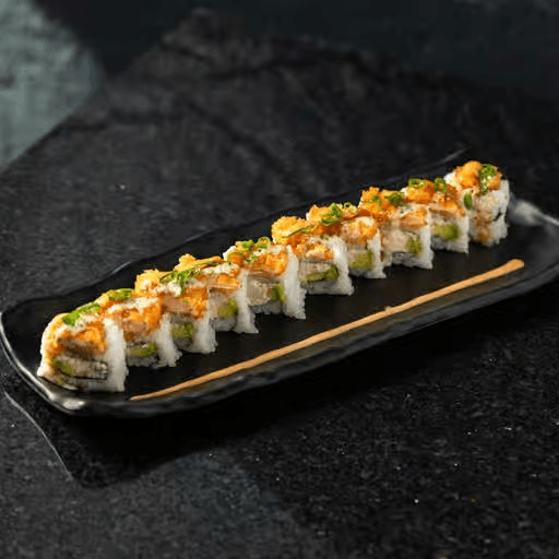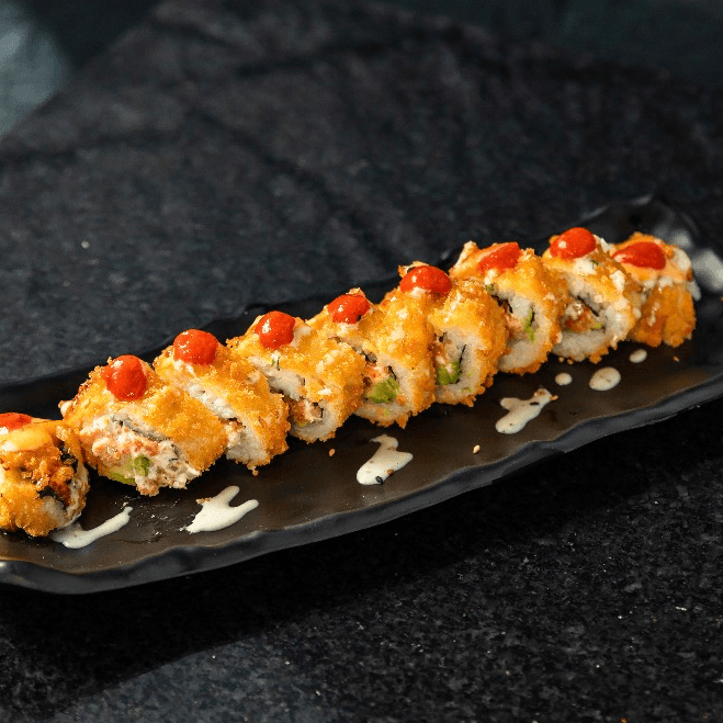 Cream cheese, avocado, spicy crab, salmon, deep fried unagi
