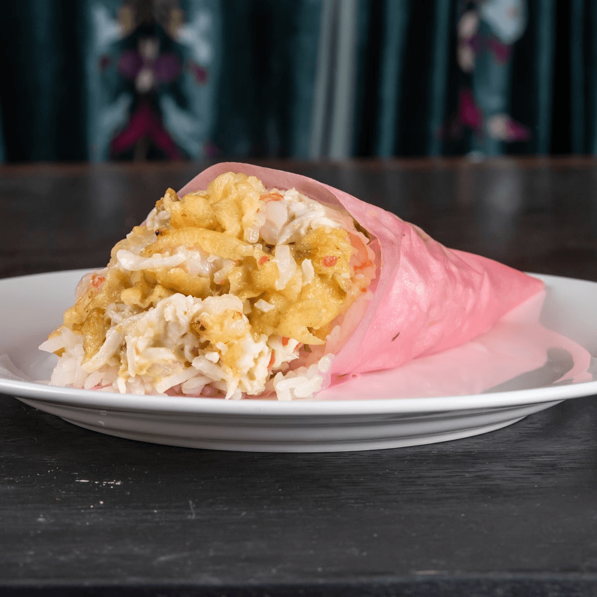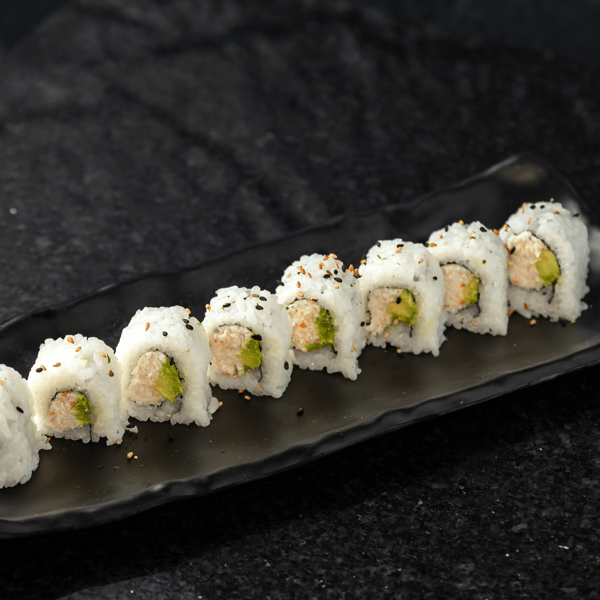 Crab, avocado, deep-fried shrimp topped with crunch flakes