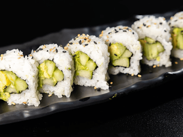 Cucumber, avocado, deep-fried shrimp topped with shrimp