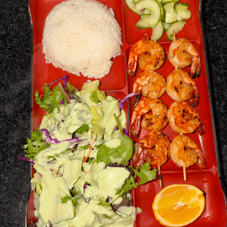 2 pieces shrimp, 2 pieces sweet potato, 2 pieces onion, 2 pieces broccoli, 2 pieces carrot, 2 pieces mushroom
